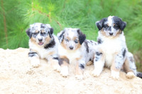 We are a small time Mini Aussie breeder that loves the breed. They are loving companions, very athletic with a strong herding since. Our Aussie's get health screened regularly by a professional vet because they are our family. The puppies will come vet checked with a health guarantee. We want to make sure you enjoy your new family member for a lifetime. We do not have Kennel's and everyone has a life inside and in the big fenced in back yard for plenty of exercise. Please check us out. Our new babies are now 6 weeks old, all females with 2 beautiful blue eyes.